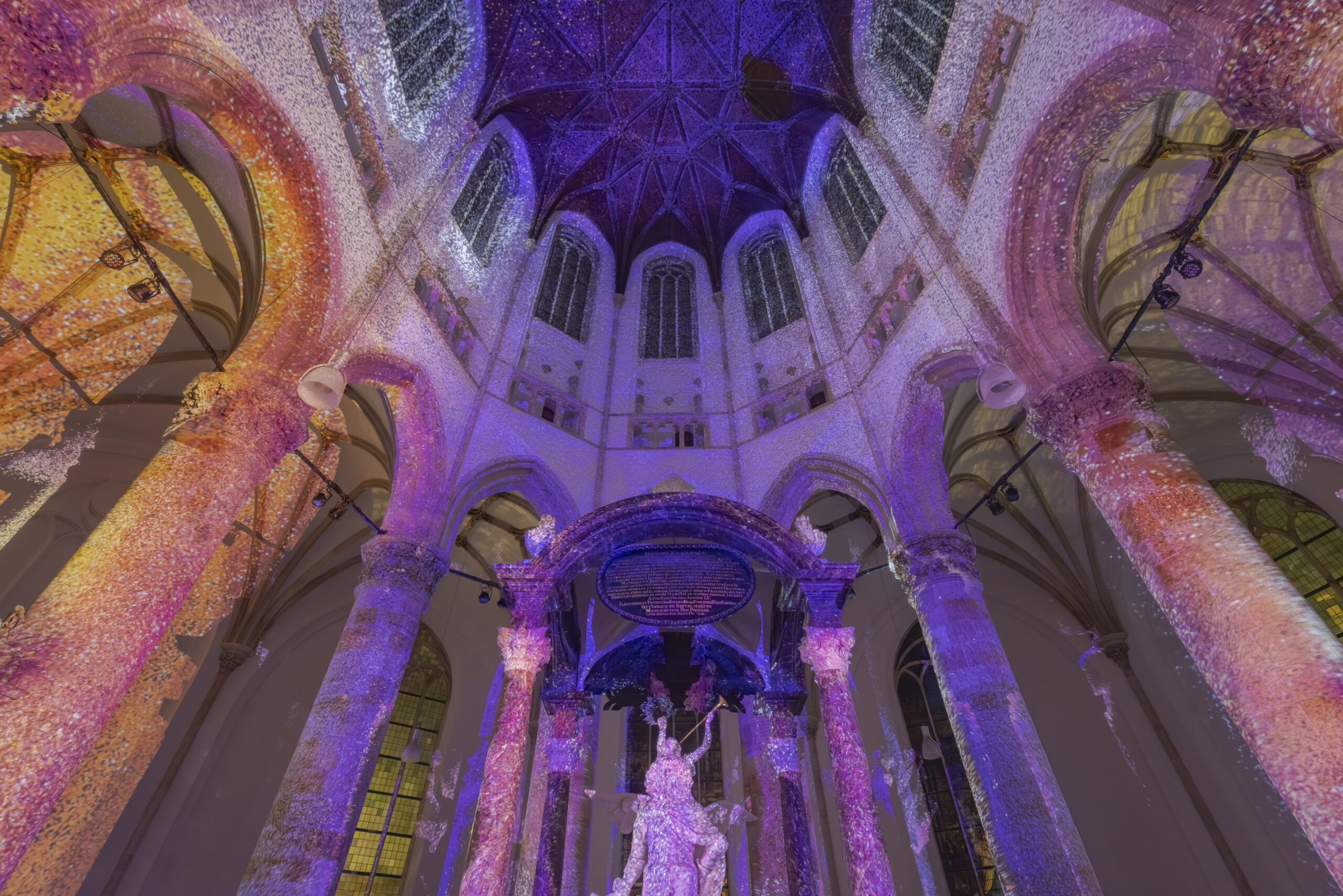 Stap binnen in de imposante Kerkzaal van de Grote Kerk Den Haag. Deze majestueuze ruimte, met haar statige zuilen, kleurrijke glas-in-loodramen en indrukwekkend hoge plafonds, biedt een adembenemend decor voor jouw evenement. Of je nu een groot congres, een bruisende beurs of een stijlvol bedrijfsfeest organiseert: de Kerkzaal vormt hiervoor altijd een onvergetelijk decor.