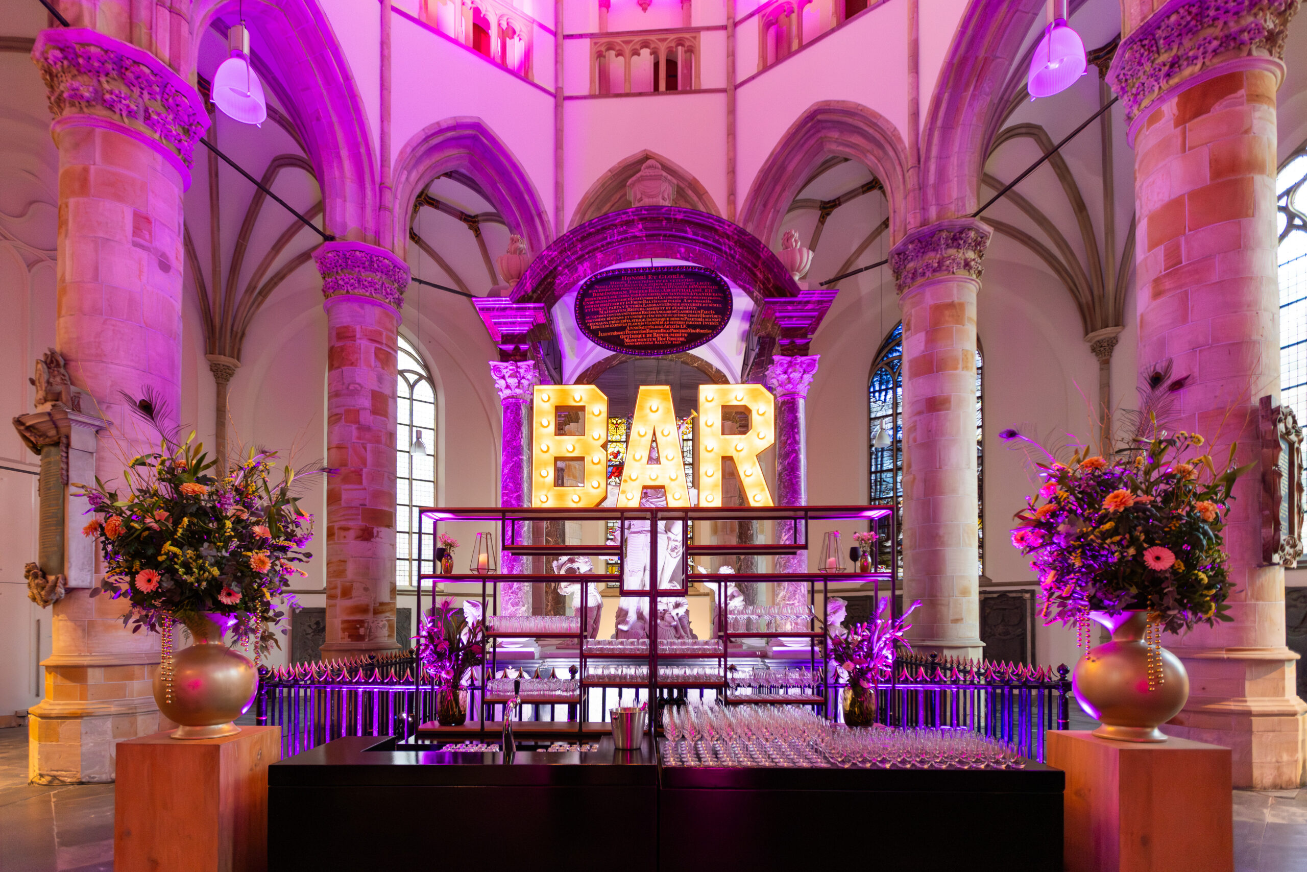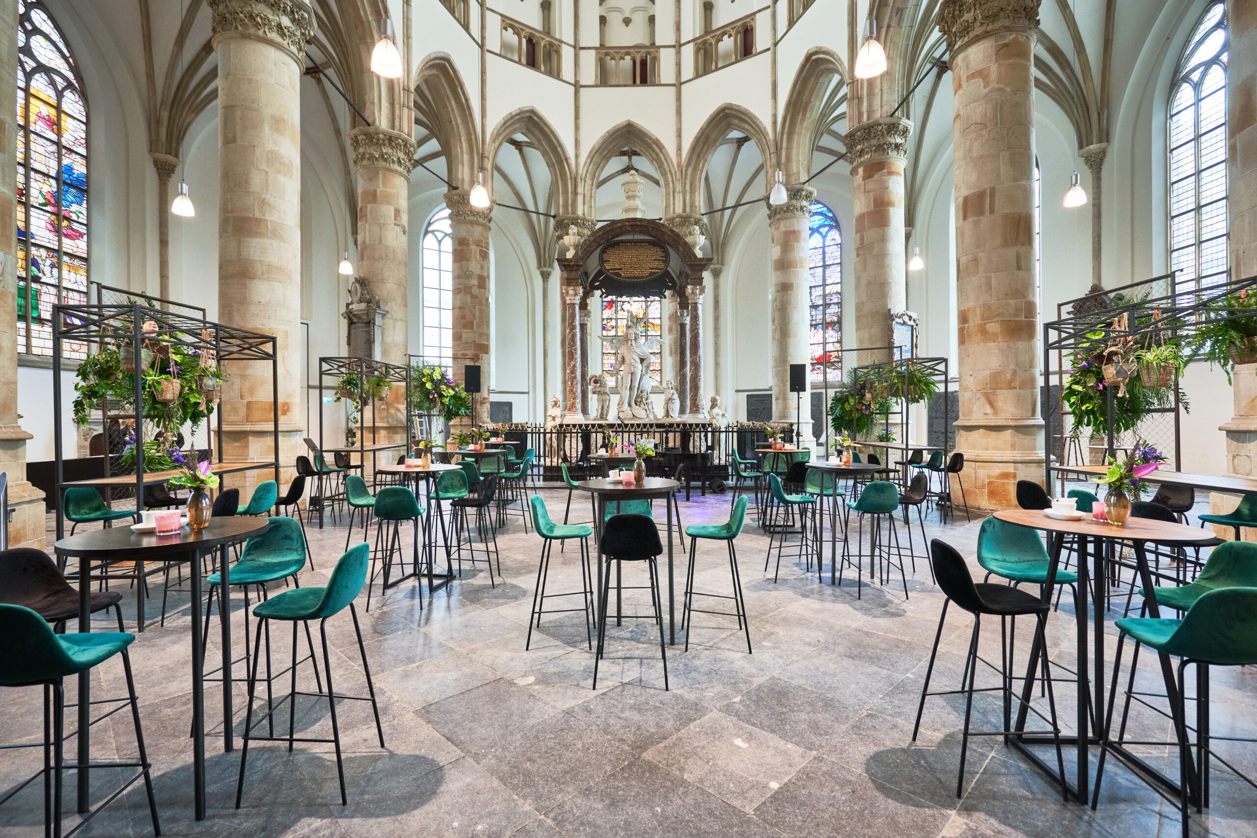 Het Hoogkoor is ook ideaal voor exclusieve borrels tot 500 personen. Dankzij de open verbinding met de Kerkzaal kunnen verschillende zones worden gecreëerd voor ontvangst, netwerken en entertainment.